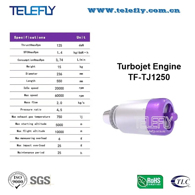 Động cơ phản lực TF-TJ1250 của Telefly là động cơ thế hệ tiếp theo có kỹ thuật tiên tiến, độ bền cao và hiệu suất vượt trội. Được thiết kế cẩn thận theo tiêu chuẩn toàn cầu, TF-TJ1250 nổi bật so với các sản phẩm cùng loại nhờ hiệu suất cao, độ ổn định và độ tin cậy lâu dài. Là nhà cung cấp Trung Quốc đáng tin cậy, Telefly cung cấp các lựa chọn bán buôn linh hoạt, giá cả cạnh tranh và hỗ trợ hậu mãi mạnh mẽ cho loại động cơ này.